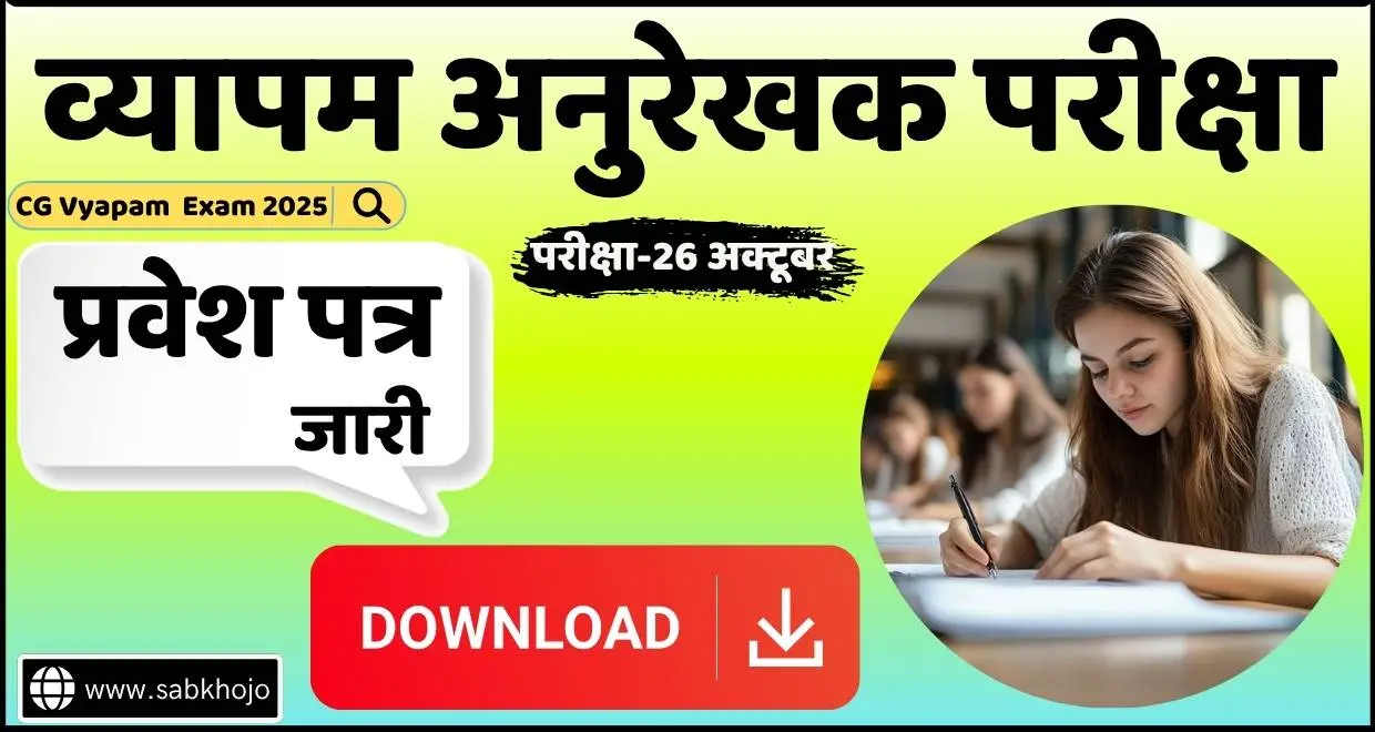 CG Vyapam Tracer Exam Admit Card Link➲ आज दिनांक 15 अक्टूबर को अनुरेखक परीक्षा एडमिट कार्ड विभागीय वेबसाइट पर अपलोड की गई है जिसका लिंक निचे दिया गया है-