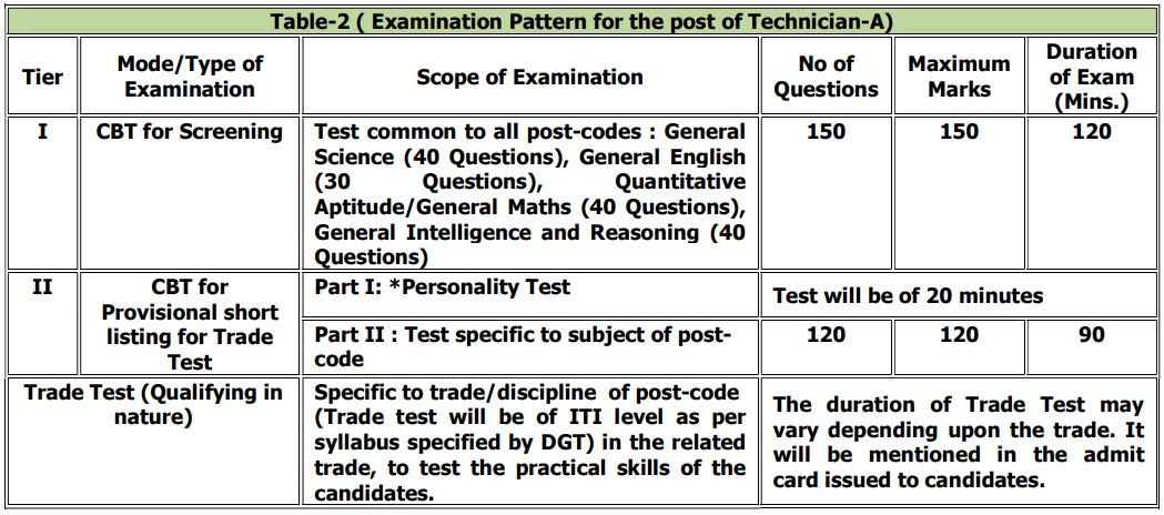 | टेक्नीशियन-A | »10वीं पास और संबंधित ट्रेड में मान्यता प्राप्त आईटीआई (ITI) सर्टिफिकेट । |