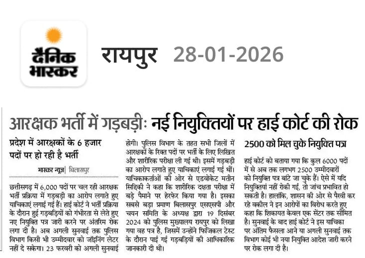 सूचना! CG पुलिस आरक्षक भर्ती की 23 फरवरी 2026 को अगली सुनवाई होगी।