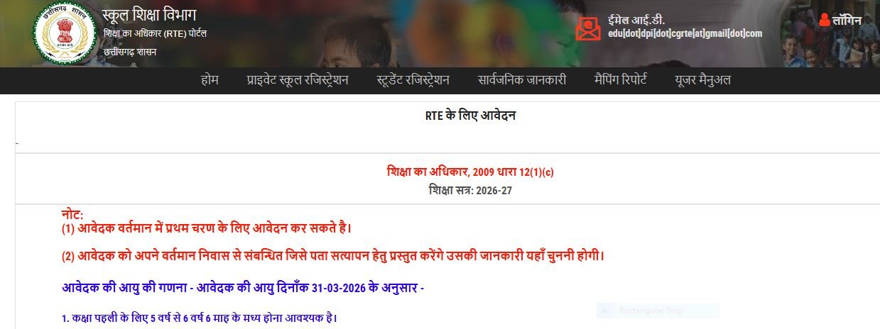 CG RTE Online Link Active 2026-27➲ ऑनलाइन आवेदन लिंक निचे दी गई है CG RTE Admission 2026 के लिए आवेदन फॉर्म कैसे भरें उसकी जानकारी देखें-