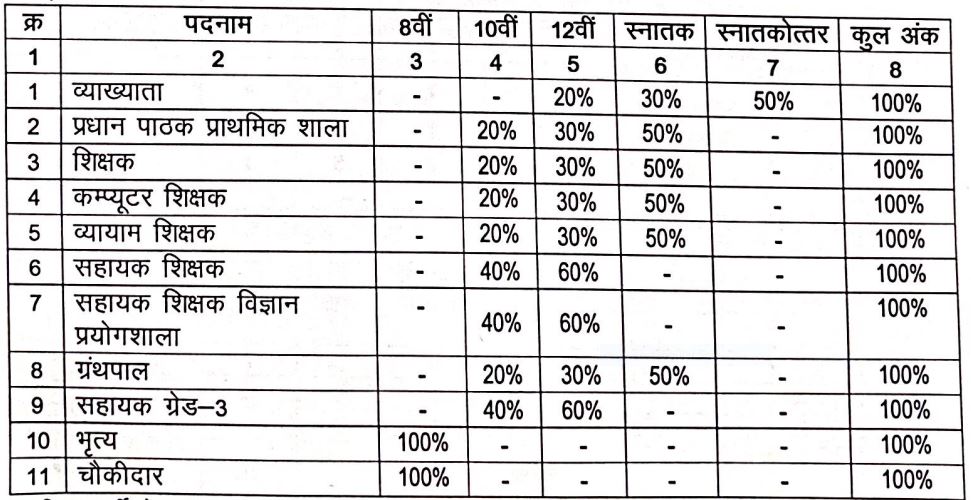 Selection Pattern:- शैक्षणिक योग्यताओं के अंकों के भारांश आधार पर प्रावीण्य क्रम में 01 पद के विरुद्ध पात्र उम्मीदवारों में से केवल 10 अभ्यर्थियों को दस्तावेज सत्यापन के लिए आमंत्रित किया जावेगा।