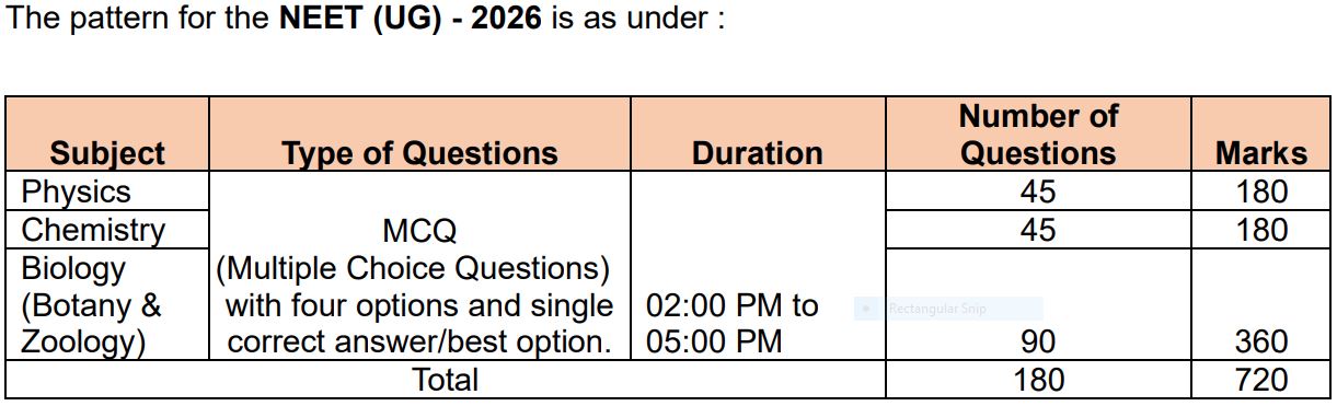 सूचना ! NTA NEET (UG-2026) परीक्षा का आयोजन 03 मई 2026 को किया जाना है।