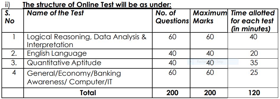 | ➲ऑनलाइन टेस्ट (Online Test): इसमें लॉजिकल रीजनिंग, इंग्लिश, क्वांटिटेटिव एप्टीट्यूड और जनरल/बैंकिंग अवेयरनेस के प्रश्न होंगे। |