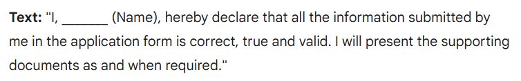 | ➲ हस्तलिखित घोषणा (Handwritten Declaration): आपको एक सफेद कागज पर हाथ से लिखकर उसे स्कैन करना होगा। |